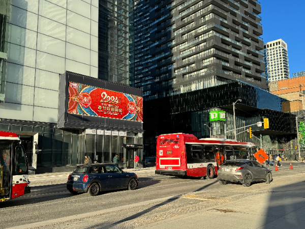 媒体位于加拿大安大略省多伦多市知名度最高的央街与南Eglinton大道交汇处,多伦多最繁忙的十字路口之一,日均车流量高达10万。央街是多伦多最繁华的购物街,是当地居民和游客必去的景点,沿线有多伦多大学、安大略皇家博物馆等。