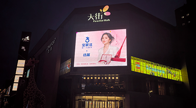 该大屏处于九龙坡区杨家坪环道力扬西西MALL外墙处,杨家坪环道和石坪桥正街交界处,面对杨家坪商圈进出口,周围大型商场众多,